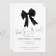 Black Bow She is Tying The Knot Bridal Shower. Available digitally and printed. The main header is in an elegant set script. The rest of the text you can easily personalise. With an elegant coquette Bow in classic black.