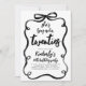 In this 30th birthday party invitation, a handwritten black brush lettering dances across the page with expressive strokes and playful movement, making the message "She's Tying Up Her Twenties" feel lively, modern, and full of personality. The curly black bow frame pulls everything together into one bold, cohesive composition. Designed for a honoree who appreciates modern design with a touch of artistic flair.