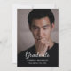 Einfache Schwarz-Braun-Abschlussfeier mit dem senkrechten Foto des Absolventen mit "Absolvent" in modernen weißen Schriften zeigen Personalize the Foto. Die Einladung kehrt zurück, um Ihre Abschlussfeierdetails mit einem schwarzen Hintergrund anzuzeigen. Passen Sie dieses Design mit Ihrer Nachricht und personalisierten Informationen an. Alle Designs sind gedruckt.