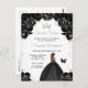 Dieses elegante und glamouröse 16 . Geburtstag-Geburtstagsjubiläum besticht durch eine hübsche Prinzessin mit braunem Haar in einem schwarzen Ball-Gown. Der Text kombiniert handgeschriebene Skripte mit modernen serifenlosen Schriftart für ein elegantes und raffiniertes Aussehen. Die Blumenarrangements, Schmetterling und Silberkonfetti bilden die perfekte Mischung aus rustikal und schick. Grafiken von www.etsy.com/uk/shop/SunflowerDayLove