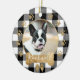 Mit unserem familiären Foto-Ornament mit einem gemütlichen und warmen, schwarzen Büffel-karierten Muster-Hintergrund verleihen Sie Ihrem Weihnachtsbaum einen gemütlichen und herzlichen Charme. Circle Foto Rahmen mit einem festlichen Imitat Goldbogen. Passen Sie Ihre Unterschrift und Ihr Foto an. Von Moodthology Papery entworfen