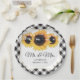 Rustikale karierte, schwarz-weiße Büffel-Hochzeitszettel-Teller mit sonnigen Blume und Lichtern auf schwarz-weiß karierten Hintergrund. Matching Artikel verfügbar, um diese Hochzeitspapier-Teller zu ergänzen. Personalisieren Sie diese Teller einfach zu jedem Anlass.