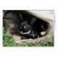 Schwarz-Oter-farbenes Kaninchen in einer hohlen Holzgrüßkarte
