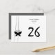 Die Black Butterfly-Tischnummer verfügt über einen eleganten, schwarzen Schmetterling mit ausgebreiteten Flügeln und eine geschmeidige Antenne und ist eine nützliche Art, Ihre Gäste zu führen. Passen Sie Ihren eigenen Text an und fügen Sie eine Nummer ein. Finden Sie auch die passende WEDING ESCORT CARD. © Morning 6