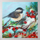 Black Capped Chickadee Bird With Berries Glossy Poster
