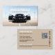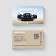 Die Black Car Rental Service Brown Business Card bietet einen malerischen Blick auf einen Wagen, der mit der weißen stilisierten Typografie des Firmennamens übereinstimmt, während sich im Hintergrund die braune Pflasterfarbe mit allen Details des Geschäfts widerspiegelt. Hinzu kommt ein QR-Code, der heute mit dem Marketing-Trend behalten wird.