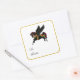 Elegant hand-drawn digital art of a black Pegasus leaping inside of a golden frame. This 3" glossy square sticker set of six makes a charming to/from gift label for horse lovers, fantasy art fans, and carousel collectors. Features a thin gold border, Parisienne script, and a crisp white background for timeless appeal. Perfect for special presents, party favors, or boutique packaging.
