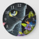 Black Cat 557 Blauer Schmetterling Blume Große Wanduhr