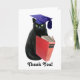 Eine schwarze Katze trägt einen Abschluss und liest ein rotes Buch. Vielen Dank an alle, die Ihnen geholfen haben, diesen Abschluss mit diesem Spaß Dankeschön Karte.