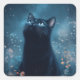 Black Cat Amidmoonlit Wildblumen Quadratischer Aufkleber