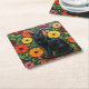 Black Cat and Colorful Folk Art Flowers Rechteckiger Pappuntersetzer