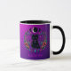 Black Cat Celestial Mystical Coffee Mug features an enchanting black cat surrounded by moon phases, stars, flowers, crystals, and magical botanical details on a vibrant purple and pink background. This mystical fantasy design blends celestial, witchy, and gothic-inspired elements for a bold, colorful look that feels both dreamy and magical. A beautiful choice for black cat lovers, moon gazers, crystal lovers, and anyone drawn to mystical, spiritual, or celestial artwork.