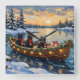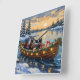 Black Cat Christmas Boat Holiday Quadratische Wanduhr