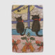 Diese beiden niedlichen schwarzen Katzen sitzen geduldig auf dem Fensterbrett, damit der Weihnachtsmann ankommt. Es ist Heiligabend und der Schnee fällt schwer. Das Haus ist mit heiligen und saisonalen Glocken für die Ferien bedeckt. Dann wird die Geduld der Katze belohnt, wenn sie den Weihnachtsmann in seinem RentierSchlitten sehen, der über das Gesicht fliegt oder den leuchtenden Vollmond. Das ist eine bunte Weihnachtswasserfarbe, die Ihren Feriendekorationen eine fröhliche und helle Note verleiht.
