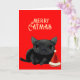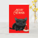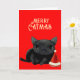 "Merry Catmas" Wasserfarbe Schwarze Katze mit einer Weihnachtsmannmütze Weihnachtskarte