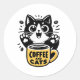 Black Cat Coffee Illustration Runder Aufkleber