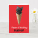 Ein schwarzes Kätzchen klebt aus einer Eistüte.