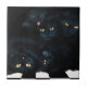 Eine Gruppe schwarzer, flauschiger Katzen, die auf einem schwarz-weißen Fliesenboden zusammenkratzen