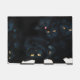 Eine Gruppe schwarzer Pelzkatzen gruppiert sich in einer großen Kuschel auf einem schwarz-weißen Fliesenboden.