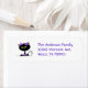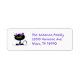Sweet Label in Weiß gemacht, mit bezaubernden Grafiken einer schwarzen Katze, mit einem großen lila Bogen, auf dem Kopf. Rücksendeadresse Text, in lila, ist vollständig anpassbar, um Ihre Bedürfnisse Anzug. Ideal für jeden Tag Gebrauch oder besondere Anlass.