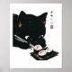 Black Cat Eating Sushi - Katze Japanisch Kunst Poster