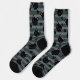 Eine schwarz-graue gestreifte Crew-Socke mit Niedlichen schwarzen Katzengesichtern für sie.