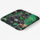 Ein wütender Freund hinter den Lenkern eines glänzenden grünen Fahrrads, das ein grünes Saint Patrick's Day Outfit trägt, das den Kopf dreht. Die Katze ist in einem festlichen Ensemble gekleidet, komplett mit einer grünen Bogen-Krawatte und einem passenden Oberhut, der sich schmutzig auf den Kopf setzt. Das Outfit zeichnet sich durch die aufwändigen Entwürfe von Kleeblättern und Kobolden aus und macht deutlich, dass diese Katzenkatze bereit ist, den St. Patrick's Day im Stil zu feiern.