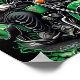 Ein wütender Freund hinter den Lenkern eines glänzenden grünen Fahrrads, das ein grünes Saint Patrick's Day Outfit trägt, das den Kopf dreht. Die Katze ist in einem festlichen Ensemble gekleidet, komplett mit einer grünen Bogen-Krawatte und einem passenden Oberhut, der sich schmutzig auf den Kopf setzt. Das Outfit zeichnet sich durch die aufwändigen Entwürfe von Kleeblättern und Kobolden aus und macht deutlich, dass diese Katzenkatze bereit ist, den St. Patrick's Day im Stil zu feiern.
