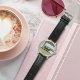 Uhr, Klassische Damenuhr mit schwarzen Lederarmband