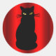 Eine gruselige schwarze Katze, die dich mit gelben Augen auf blutrot anstarrt, um Halloween in diesem Jahr zu feiern. Sie hat schwarz als Nachtfell und große Whiskers. Ideal, um Ihr Haus zu Halloween zu schmücken, oder einfach nur ein tolles Geschenk für Katzenliebhaber!