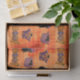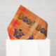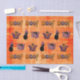 Niedliche Abbildung einer schwarzen Katze und kleiner Kätzchen auf orangefarbenem Hintergrund