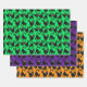 Schwarze Katzenhalloween-Set aus 3 Blättern mit einem trendigen Katzenmuster auf einem grünen, lila und orangefarbenen Hintergrund. Für passende Produkte schauen Sie bitte in der Black Cat Halloween Collection in meinem Shop nach.