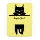 Dieser Magnet hat eine niedliche schwarze Katze, die auf einem Bar vor einem gelben Hintergrund hängt, und es werden folgende Worte unterstützt: Hang da rein!