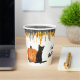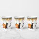 Dieser Halloween-Party-Papierbecher ist mit einer schwarzen Katze ausgestattet, die neben einer glühenden Jack-Laterne sitzt. Oben auf der Tasse sind Imitate glitzernde schwarz-orange Tropfen. Die Katze und der Jack o' Laternenbild werden zweimal wiederholt, dazwischen steht "Happy Halloween". Der Text kann leicht auf alles geändert werden, was Sie bevorzugen. *Der Glitzer wird simuliert; es wird kein Glitzer verwendet.