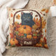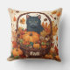 Black Cat mit Fall Harvest Basket Brown Kissen