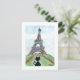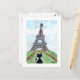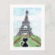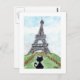 Black cat Noir Chat Blick auf den Eiffelturm Kunst Postkarte