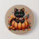 Black Cat on Pumpkin mit Herbst Quilt Muster Button