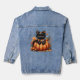Black Cat on Pumpkin mit Herbst Quilt Muster Jeansjacke