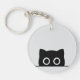 A charming and minimalist black cat design perfect for the modern cat lover. This cute keychain features a simple, elegant kitten illustration by JinksWorks, making it a wonderful gift for cat owners.