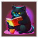 Black Cat Reading a Book Poster