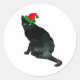 Eine schwarze Katze trägt eine rot-grüne Santa-Kappe auf diesen Rücksendeadressen-Aufklebern.