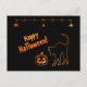 Black Cat Silhouette Neon Happy Halloween Postkarte