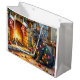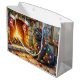 Black Cat Sitting Fireplace with Christmas Lights Große Geschenktüte