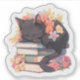 Black Cat Sleeping on Books Sticker, Spring Flowe Aufkleber
