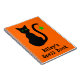 Ein Silhouette Cartoon einer schwarzen Katze mit grünen Augen vor einem orangen Hintergrund. Ein grüner Stern hängt vom Schwanz der Katze. Die Vorderseite des Notizbuches lautet "Rileys Zauberbuch" und kann in Ihren eigenen Namen oder Wörter geändert werden.