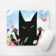 Black Cat Spring Fever: Kitty and Flowers Mousepad