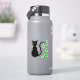 A silhouette cartoon of a black cat with a star hanging from their tail. Also included are some matching stars in different sizes.