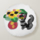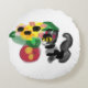 Black cat sunflowers rundes kissen