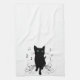 Black Cat Surrounded by Whispering Notes of Music Geschirrtuch