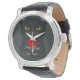 Uhr, Klassische Damenuhr mit schwarzen Lederarmband